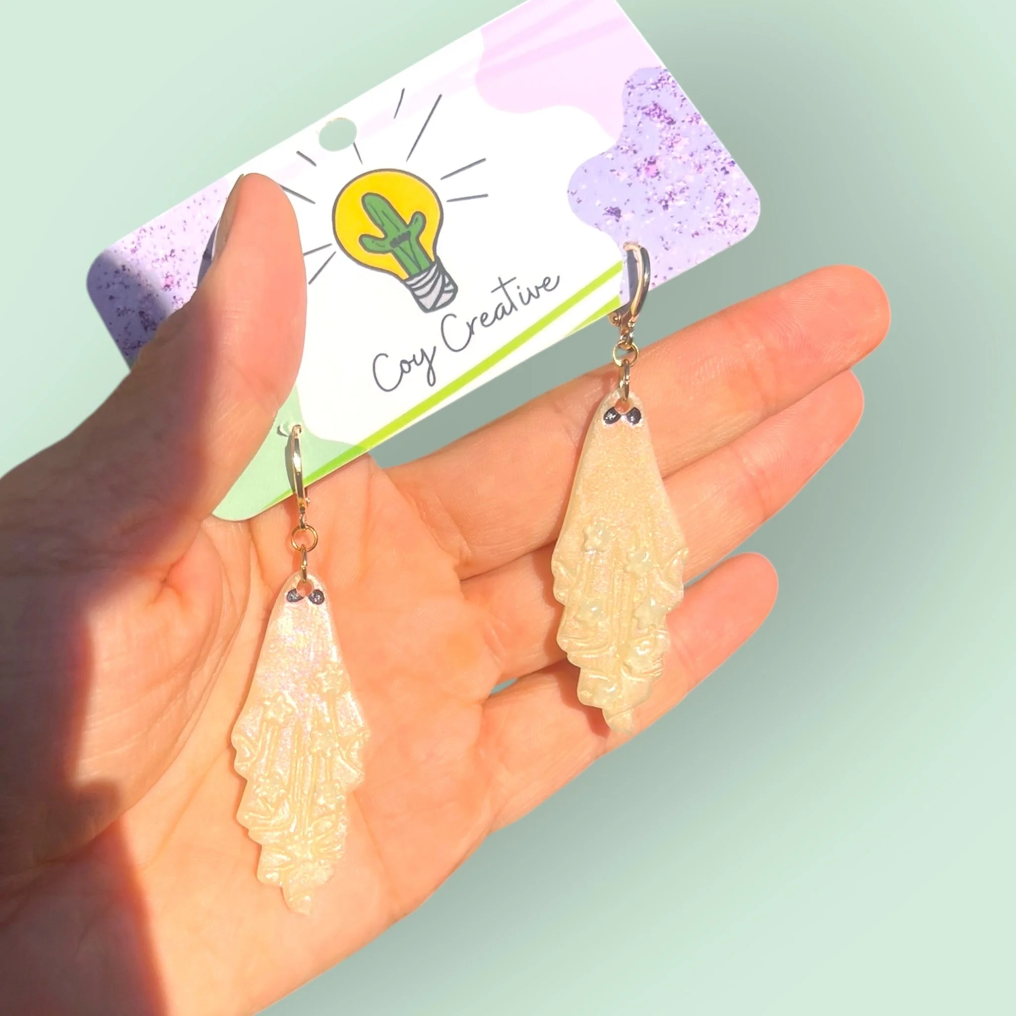 Please take care of your polymer clay earrings. They have some flexibility, but should not be treated roughly or submerged in water. Proper storage will extend the life of your earrings. Brass may tarnish if left in humid environments. It is best to keep your earrings stored in a bag or other safe place when not in use.